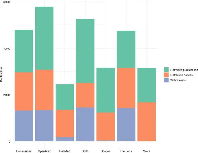 The objective was to identify discrepancies, determine their causes, and select the best database to capture retracted literature accurately. To this end, they searched seven academic databases for all retracted publications, retraction notices, and withdrawals since the year 2000. To ensure the relevance of the impact, they exclusively used web search interfaces, except for OpenAlex and Scilit.