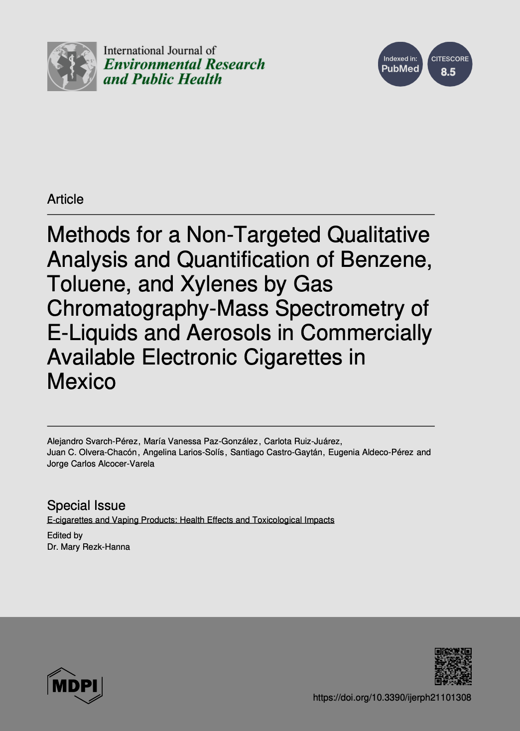 Sussman, R.A.; Gómez-Ruiz, H.; Farsalinos, K. Comment on Svarch-Pérez et al. Methods for a Non-Targeted Qualitative Analysis and Quantification of Benzene, Toluene, and Xylenes by Gas Chromatography-Mass Spectrometry of E-Liquids and Aerosols in Commercially Available Electronic Cigarettes in Mexico. Int. J. Environ. Res. Public Health 2024, 21, 1308. Int. J. Environ. Res. Public Health 2025, 22, 1049. https://doi.org/10.3390/ijerph22071049