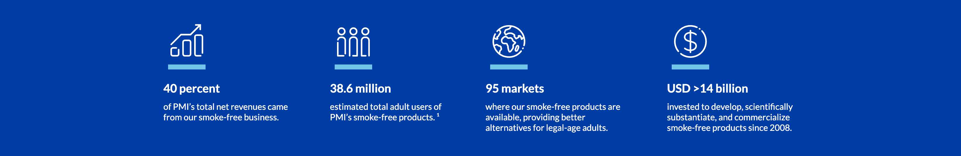 Since 2008, PMI has invested more than $14 billion in the development, scientific validation, and commercialization of smoke-free products. This figure encompasses various activities, from preclinical toxicology and clinical trials to behavioral research and post-marketing surveillance.